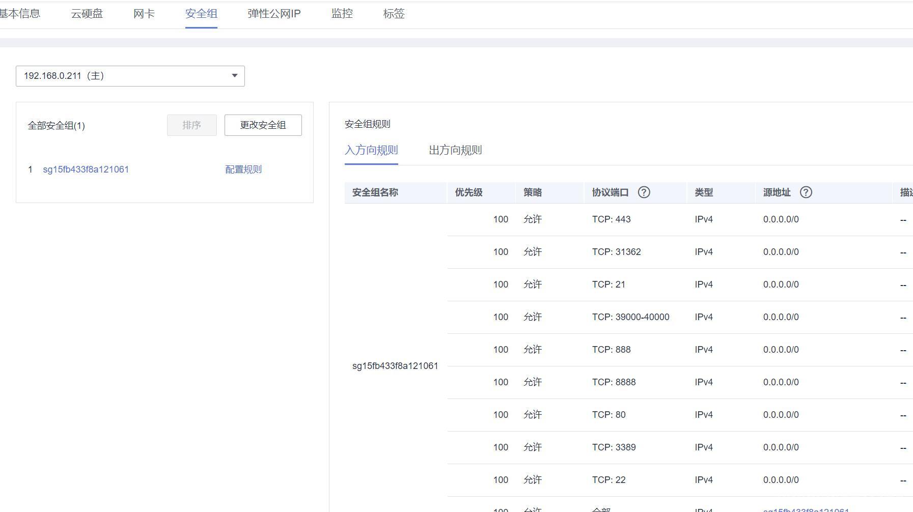 点击配置规格,入方向,本人添加了两个TCP端口,31362和443